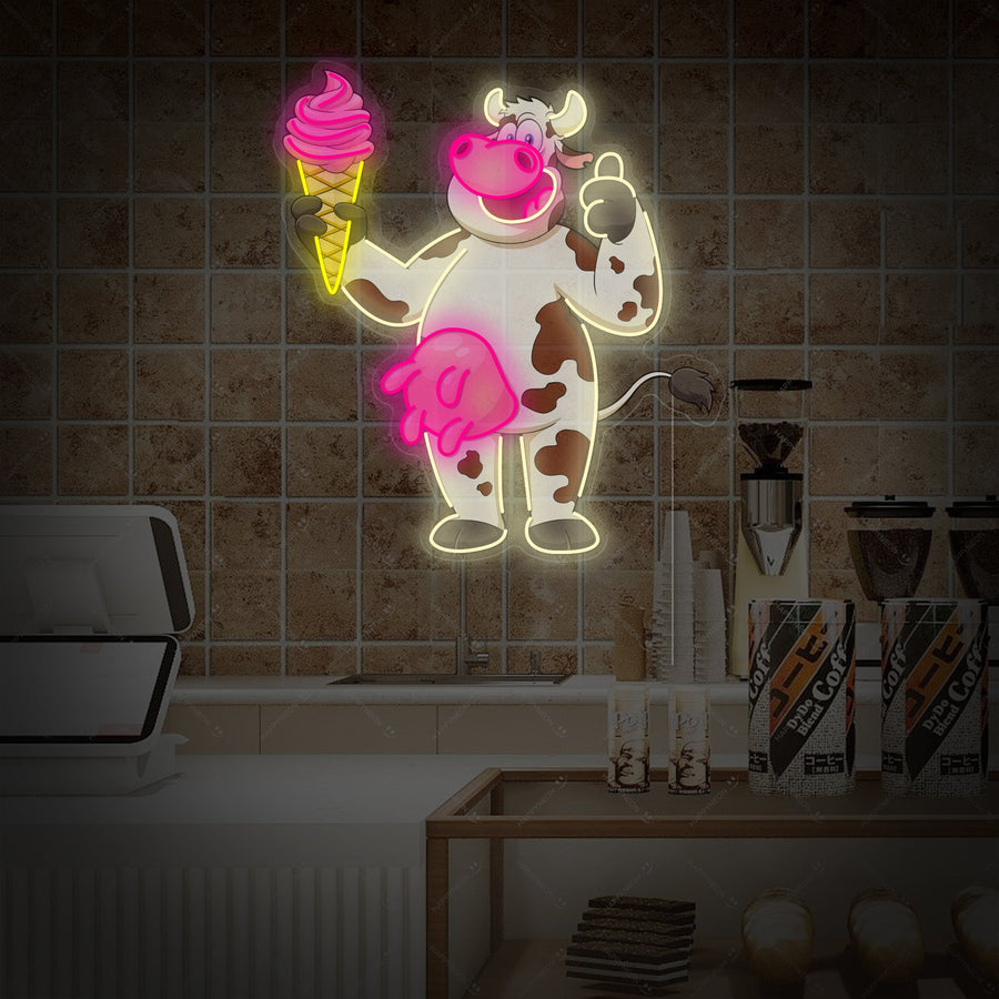 "Mucca carina con gelato" Insegna al neon